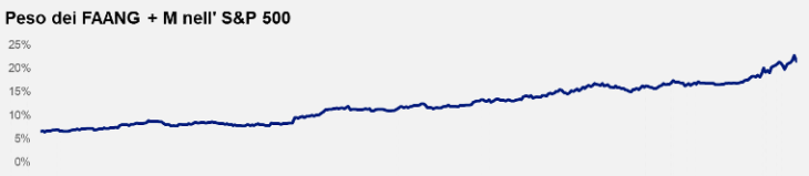 Grafico 2: peso dei FAANG + M nello Standard & Poors 500, 2013-2020