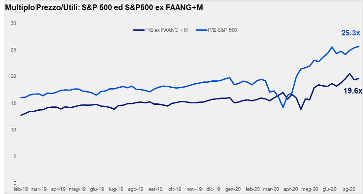 Grafico 3: valutazione dell’S&P 500 e S&P 500 esclusi i FAANG + M