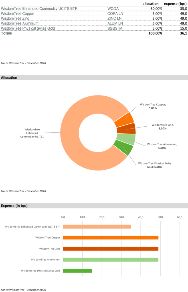fonte: WisdomTree Commodity Model Portfolio Presentation – dati a Dicembre 2020