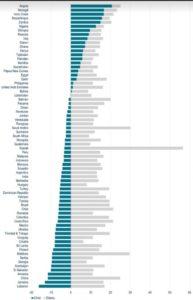Nella Figura 2 le barre verdi rappresentano la variazione prevista della popolazione infantile dal 2023 al 2050 come percentuale della popolazione in età lavorativa del 2050. Le barre grigie rappresentano la stessa variazione per la popolazione con più di 65 anni. Tutte i paesi emergenti vedranno il fenomeno dell’invecchiamento accentuarsi nei prossimi due decenni, poiché tutte hanno barre grigie positive. Tuttavia, solo alcuni paesi emergenti saranno ancora “verdi”. L’Uzbekistan e tutti i Paesi che si collocano al di sotto dovrebbero registrare una contrazione della popolazione infantile.