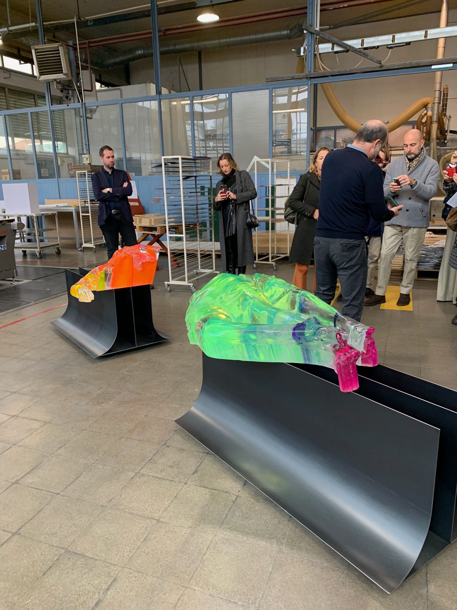 Le opere realizzate sono esposte nel contesto stesso dove sono state concepite, tra le moderne macchine utensili e i professionisti che le programmano con perizia e maestria, sviluppando un inconsueto e suggestivo percorso espositivo.
