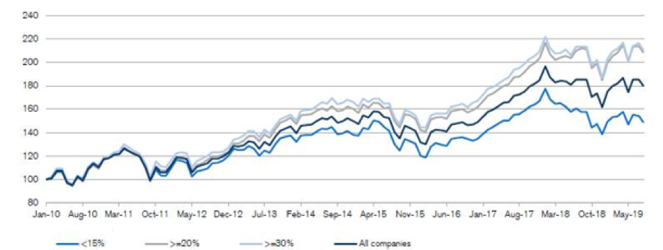 L’analisi mostra che il livello di diversità nel board non va solo associato a migliori risultati finanziari oggi, ma può anche essere un indicatore della capacità di un’azienda di proteggere i suoi profitti in futuro.
