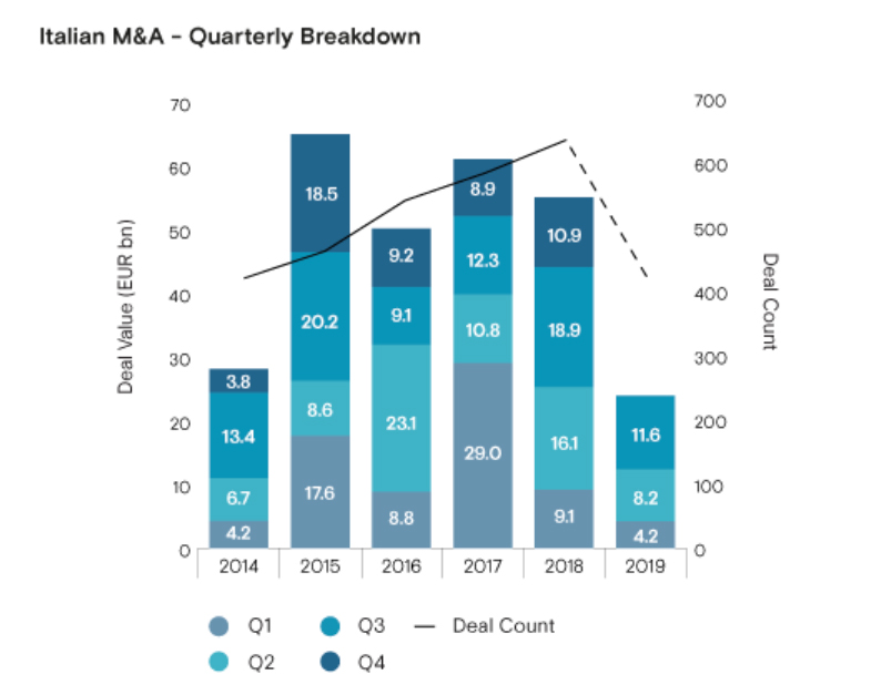 L’attività di M&A in Italia mostra un incremento nel 3Q19; in discesa le operazioni di Private Equity