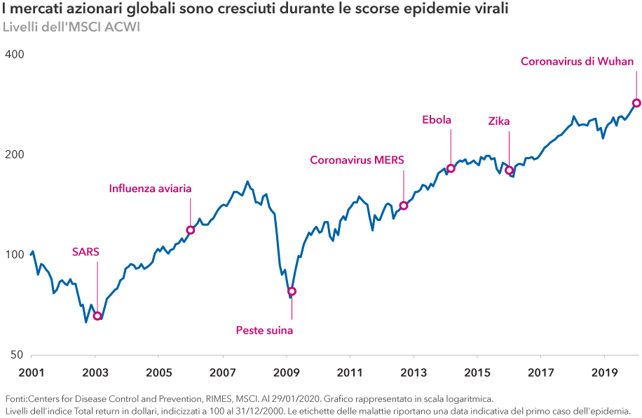 Mentre le autorità cinesi affrontano la rapida diffusione del coronavirus, gli investitori si interrogano sul suo potenziale impatto sulla crescita economica globale e sui mercati finanziari. Sebbene ci sia ancora molto da scoprire sulla portata dell’epidemia — e, di fondamentale importanza, sulla sua durata — si inizia ad avvertire l’effetto traino sulla Cina e su altri mercati emergenti.
