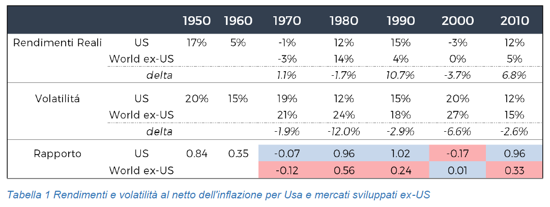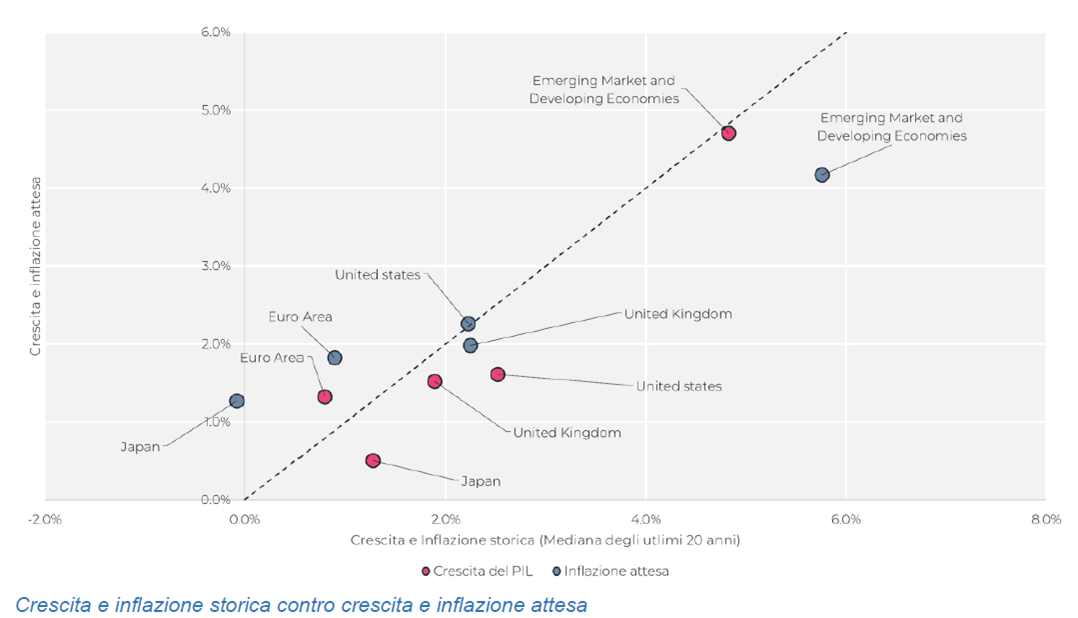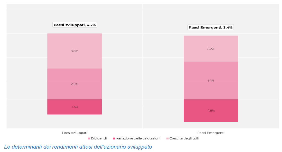 - Stimati rendimenti attesi più elevati per i Paesi Sviluppati che per i Paesi Emergenti