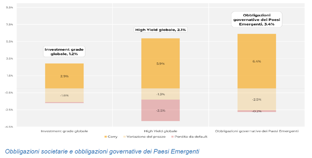 - Le obbligazioni societarie e il debito emergente offrono tassi a scadenza più elevati anche se con rischi aggiuntivi