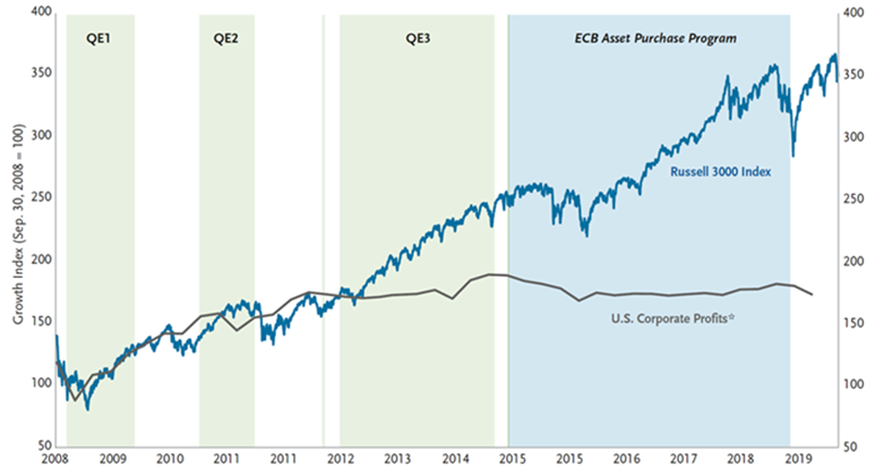 Le politiche della Fed hanno fatto lievitare i multipli P/E, ma i profitti aggregati sono rimasti stagnanti