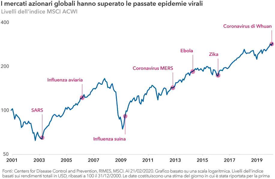 L’aumento del numero di infezioni in Europa, in particolare, ha indotto i mercati a rivalutare il rischio di una pandemia globale, anche se il numero di casi riportati nella Cina continentale è diminuito dopo l’accelerazione dell’epidemia rilevata intorno al 17 gennaio.