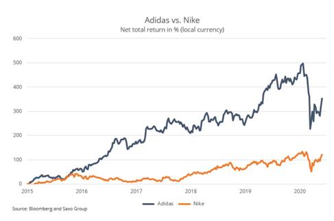 Sebbene il titolo tedesco sia rimasto più indietro rispetto a Nike nel rimbalzo di mercato, le azioni Adidas hanno ancora il 26% da percorrere prima di raggiungere il massimo storico. Questo sottolinea la febbre speculativa delle azioni statunitensi in forte accelerazione, mentre i numeri cinesi di oggi mostrano che Adidas ha un vantaggio sulla Nike nel mercato al consumo in più rapida crescita al mondo. Gli azionisti di Adidas possono inoltre godere del fatto che il titolo abbia registrato un rendimento totale del 352% dal 1 ° gennaio 2015, mentre le azioni Nike hanno prodotto il 121%.