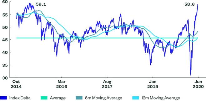 Figura 2: Indice Refinitiv Qualified Global Convertible Bond: evoluzione del delta