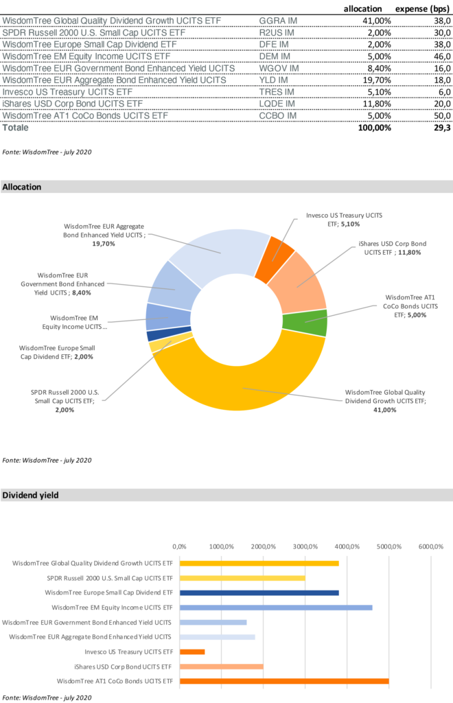 fonte: WisdomTree Balanced Model Portfolio 50% Fixed Income / 50% Equity Presentation – dati ad luglio 2020