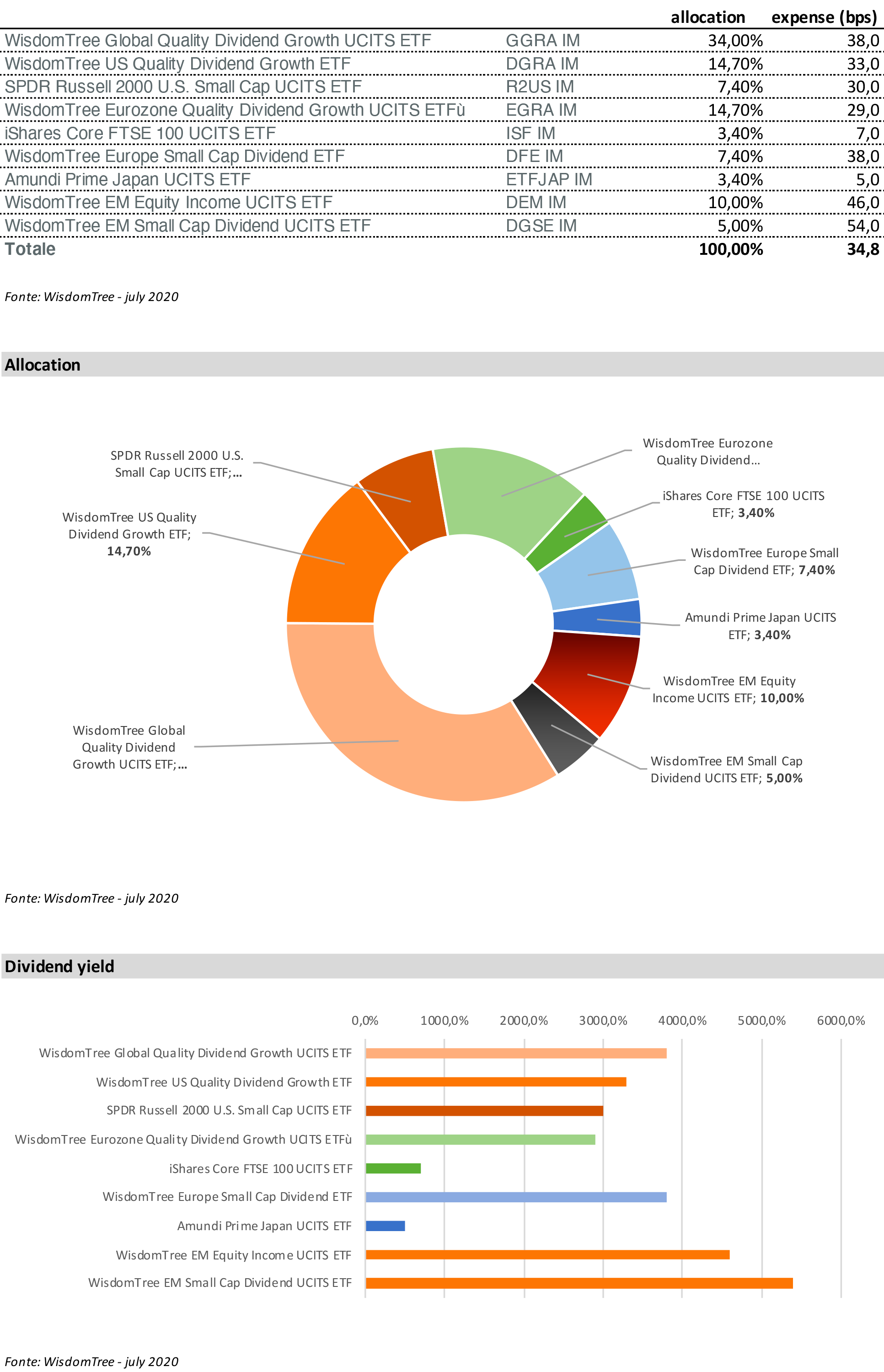fonte: WisdomTree Growth Model Portfolio 100% Equity Presentation – dati ad Luglio 2020