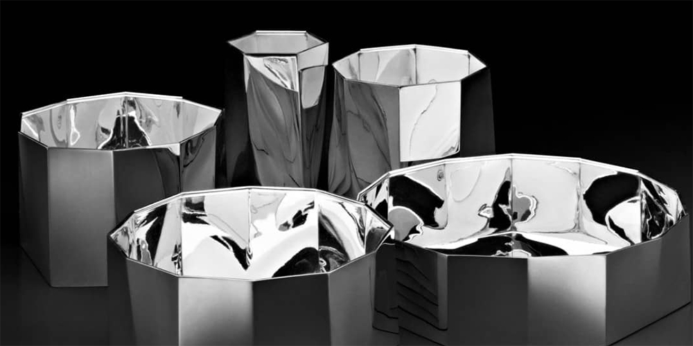 Merita ricordare il set di pentole in argento puro e ferro puro Pan 999, firmate da Afra e Tobia Scarpa, presentata nel 1999, che svelò le qualità del nobile metallo, dotato di proprietà antibatteriche, ottimo conduttore, migliore anche del rame, in grado di diffondere il calore in modo uniforme, permettendo una cottura rapida a bassa temperature, senza sprechi energetici. A designer e architetti, quali Franco Albini e Franca Helg, Maria Luisa Belgioioso, Antonio Piva, Afra e Tobia Scarpa, Lella e Massimo Vignelli, non avvezzi a misurarsi con gli ornamenti, affidò anche una collezione di monili. Il primo, firmato Afra e Tobia Scarpa, un collier di rotonde perle d’argento, legate da un cordoncino di seta colorata, nasce come dono per celebrare i 20 anni dell’azienda nel 1990.