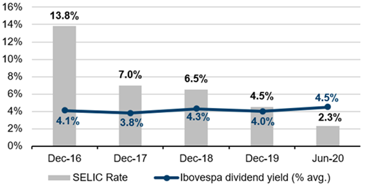 Figura 1: Rendimento da dividendo dell’indice Ibovespa a fronte del tasso SELIC (%)