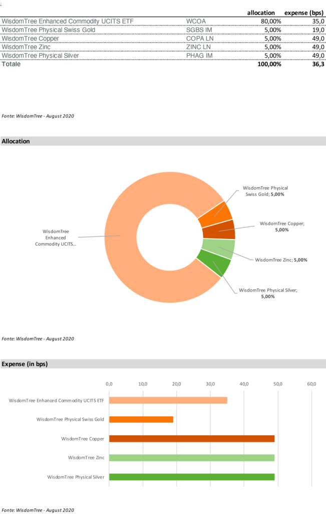 fonte: WisdomTree Commodity Model Portfolio Presentation – dati ad Agosto 2020