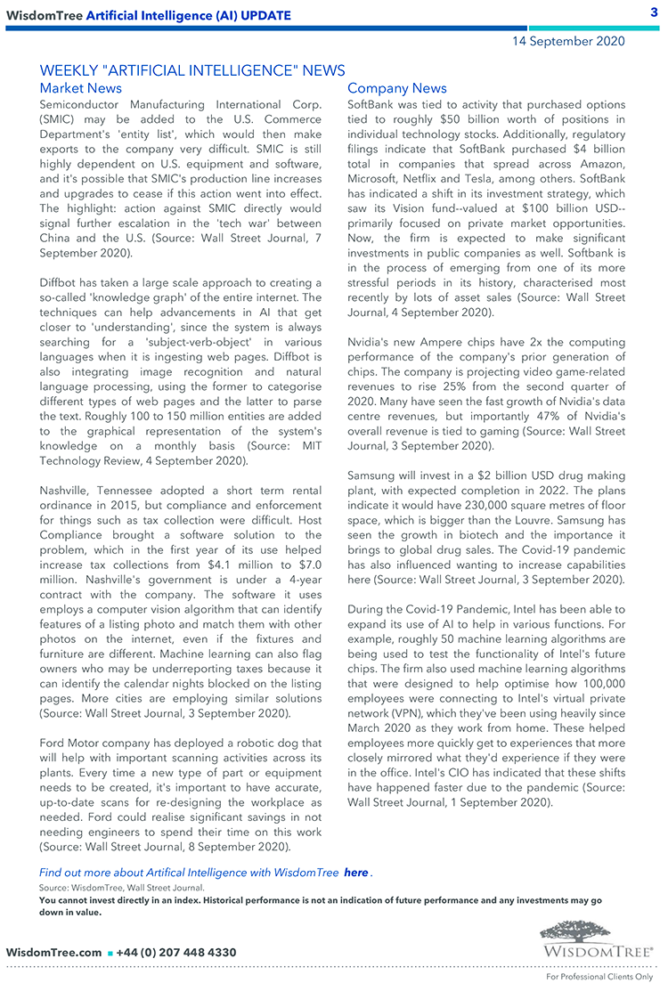 WisdomTree – Weekly “Artificial Intelligence (AI)” Update – 14 sett 2020