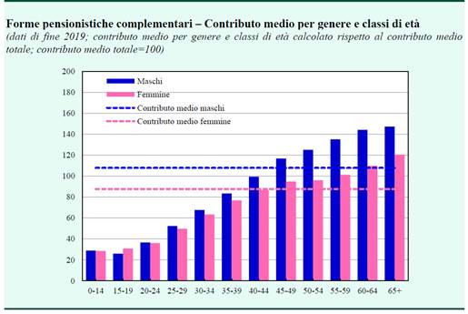 Figura 3 – Contributo medio per genere e classi di età alle forme pensionistiche complementari.