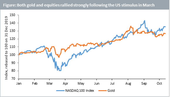 Lo stimolo fiscale di 2.000 miliardi di dollari negli Stati Uniti deciso a marzo è stato un importante fattore di svolta per i mercati. Gli indici azionari rimbalzarono fortemente anche in un momento in cui i danni della pandemia avevano raggiunto il livello peggiore per l’economia reale. Questo paradosso è diventato meno sorprendente quando è stato osservato in concomitanza con il rally dell’oro – che è stato effettivamente utilizzato dagli investitori per coprire le loro esposizioni al rischio, un’opzione put per le azioni.