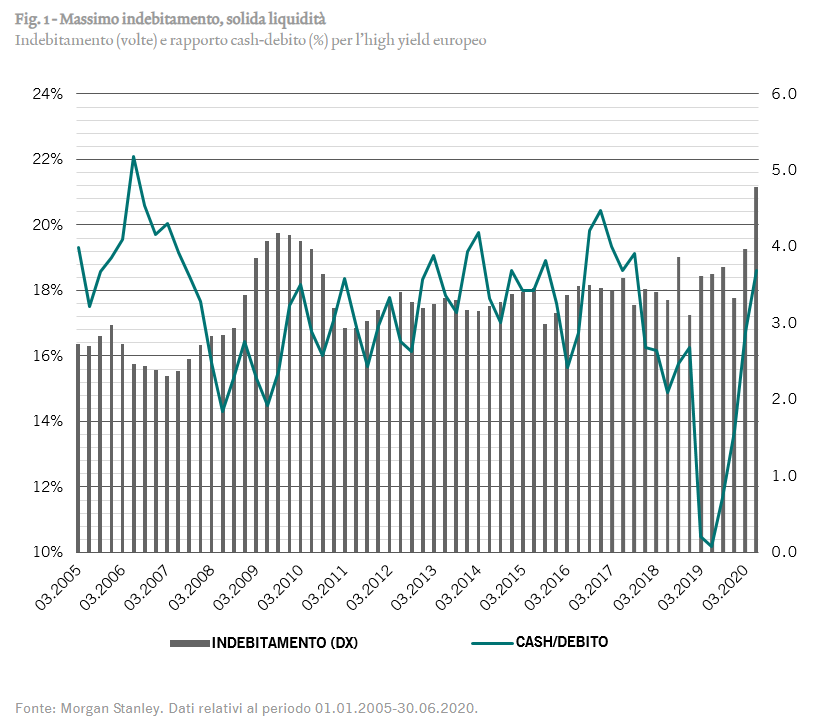 Dal canto loro, le società hanno rafforzato le posizioni in liquidità e i bilanci, attingendo alle loro linee di credito, emettendo nuovo debito, tagliando costi e riducendo la spesa in conto capitale. Il rapporto cash/debito tra le società non investment grade in Europa è di conseguenza salito dal 10% dell’anno scorso al 19% di giugno 2020.
