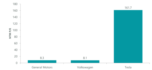 Tesla certamente gode di proprietà intellettuali di altissimo valore e di una solida leadership in ambito software, ma con un rapporto prezzo-utili (P/E) a 162 è lecito pensate che molte delle opzioni sono già state scontate. Invece, Volkswagen e GM, che stanno sostenendo spese da miliardi di dollari e che puntano ad avvicinarsi a Tesla nel comparto software, hanno una P/E ratio pari a 8. Questo comporta che nelle azioni di entrambe si celi non solo potenziale in caso di ripresa ciclica, ma anche opzioni a basso costo qualora avessero un qualche successo nel mercato dei veicoli elettrici. Inoltre, il business degli OEM sui veicoli elettrici potrebbe trasformarsi in un modello di licenza della proprietà intellettuale, con un notevole potenziale sul lungo periodo.