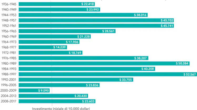 Crescita dell’ipotetico investimento di 10.000 dollari effettuato all’inizio di ciascun anno elettorale