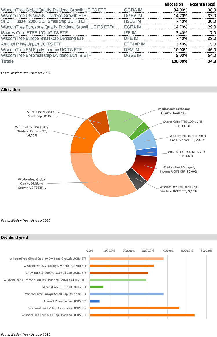 fonte: WisdomTree Growth Model Portfolio 100% Equity Presentation – dati ad Ottobre 2020