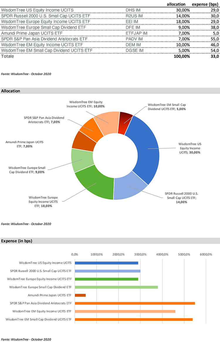 fonte: WisdomTree – Income Model Portfolio 100% Equity Presentation – dati ad Ottobre 2020