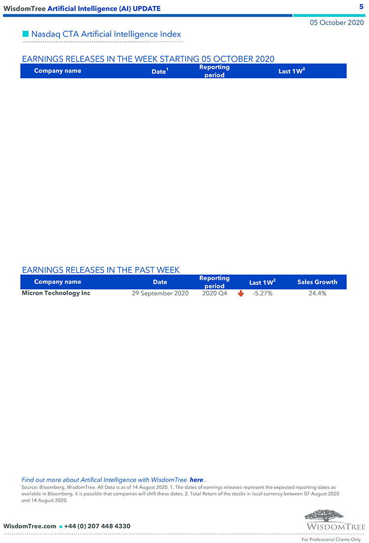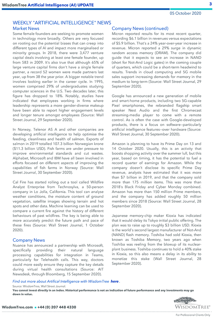 WisdomTree – Weekly “Artificial Intelligence (AI)” Update – 05 ott 2020