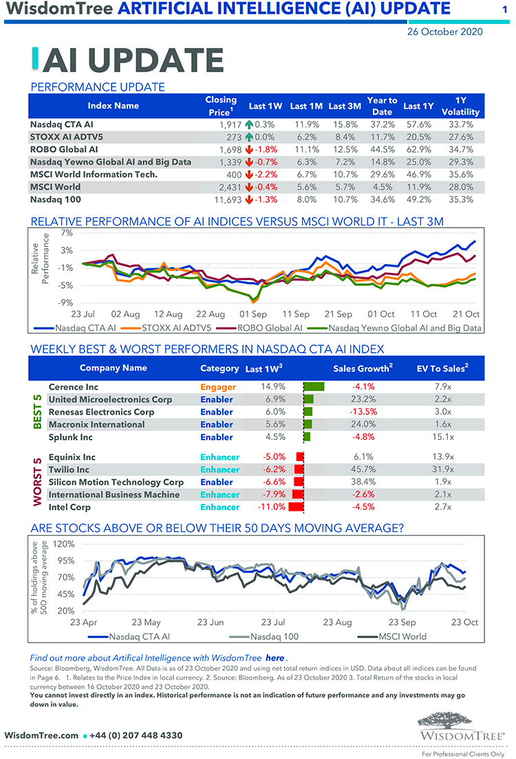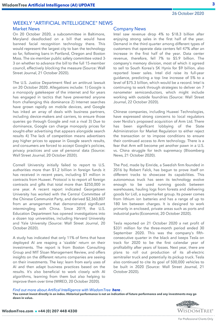 WisdomTree – Weekly “Artificial Intelligence (AI)” Update – 26 ott 2020