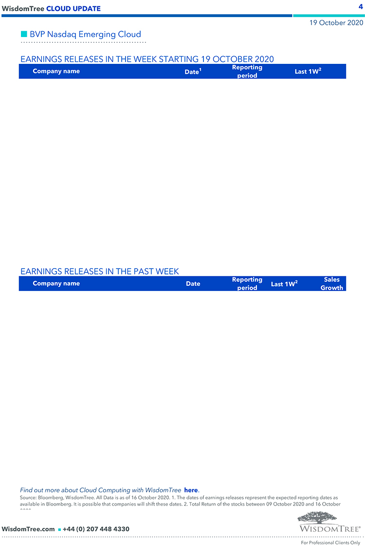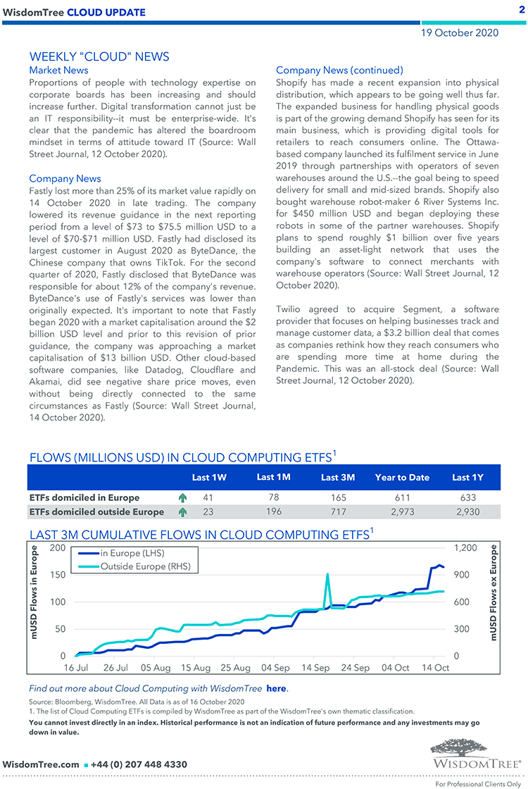 WisdomTree – Weekly “Cloud” Update – 19 ott 2020