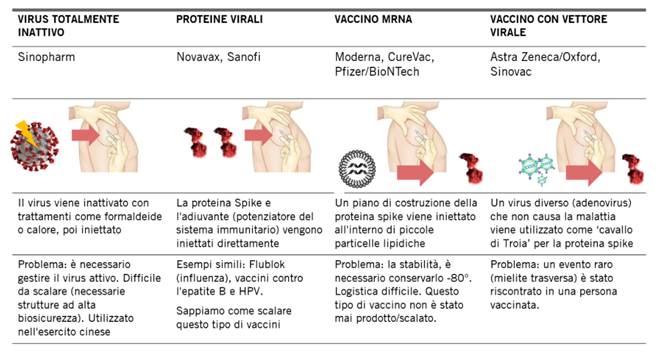 Diverse tipologie di vaccino