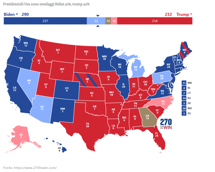 Scongiurata l’eventualità dell’onda blu, i mercati possono brindare all’avvicendamento al vertice: l’insediamento di Joe Biden alla Casa Bianca libera, infatti, il panorama politico della leadership difficilmente prevedibile di Donald Trump. La consultazione elettorale restituisce agli Stati Uniti un leader moderato che, facendo di necessità virtù, potrebbe riuscire a far collaborare con il suo governo anche i Repubblicani più centristi, disillusi da Trump. Una linea politica di riconciliazione nazionale e più bi-partisan sarebbe quanto mai auspicabile in una fase complicata per gli USA e per il mondo, ancora alle prese con la pandemia di COVID-19. Tutto ciò richiede, ovviamente, l’uscita di scena di Trump che, non essendo figura di ‘apparato’, dovrebbe risultare alquanto agevole, anche se andrà negoziata con l’interessato.