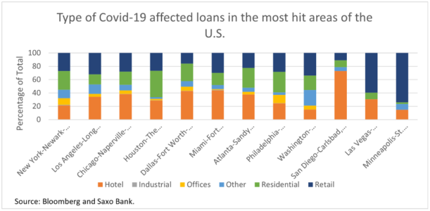 Questo spiega anche perché le città che stanno registrando la maggior parte dei casi di insolvenza negli USA sono quelle in cui c’è la più grande quantità di negozi ed alberghi.
