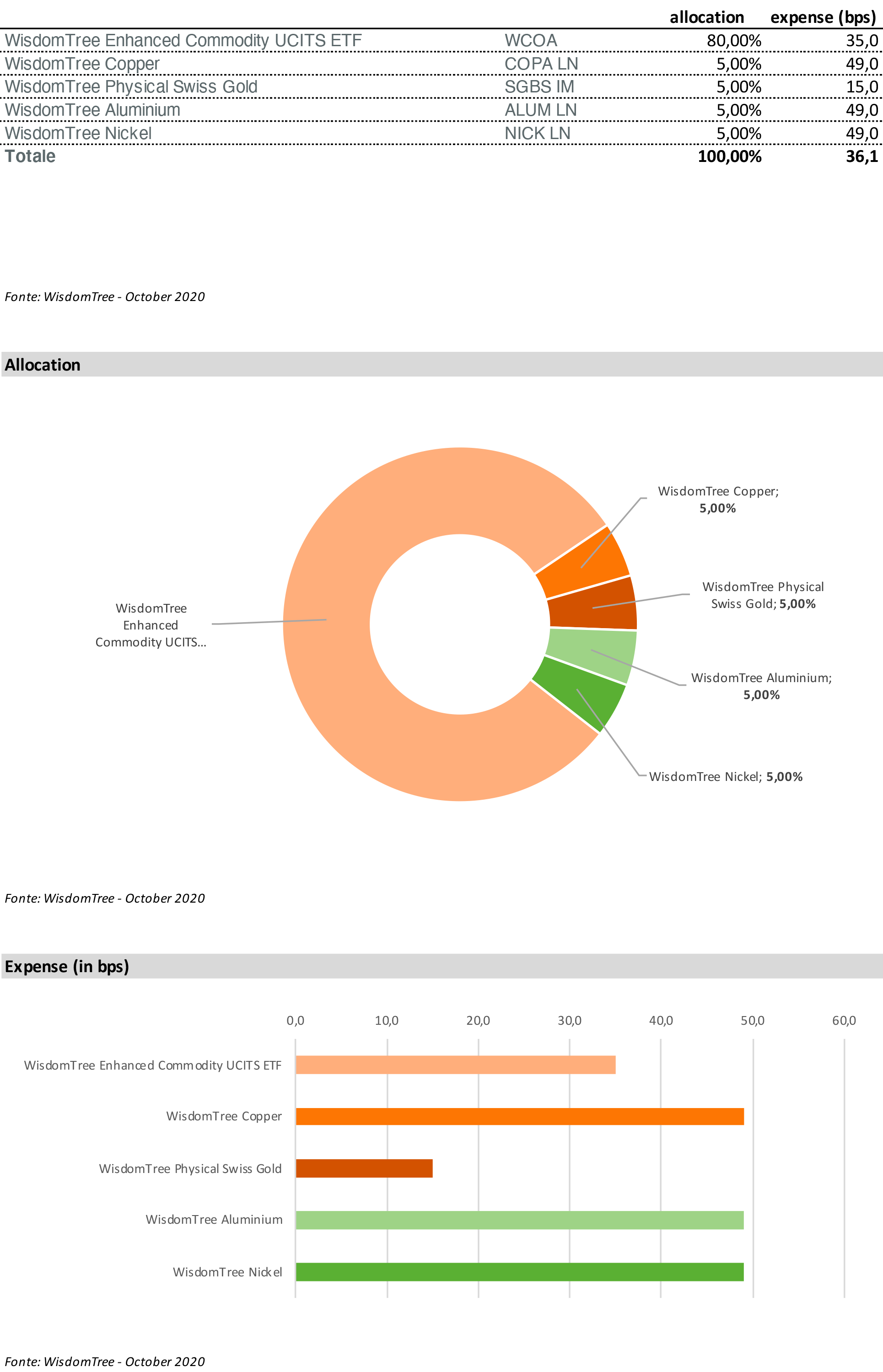 fonte: WisdomTree Commodity Model Portfolio Presentation – dati ad Ottobre 2020
