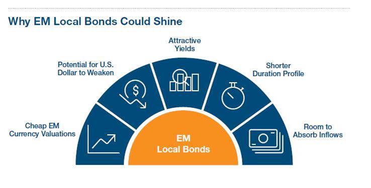 In uno scenario in cui gli investitori faticano a trovare rendimenti, crediamo che i bond emergenti in valuta locale rappresentino un’opportunità da non trascurare. Alcune di queste obbligazioni offrono rendimenti tra i più alti al momento disponibili sul mercato, mentre le valute emergenti hanno valutazioni attraenti e sono pronte a beneficiare di una possibile inversione del ciclo del dollaro USA. Ecco cinque fattori per i quali a nostro avviso vale la pena puntare su questa asset class.