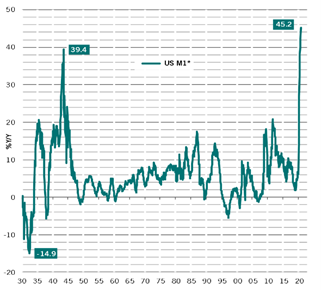 Offerta di Moneta (M1) USA dalla Grande Depressione (y/y%)