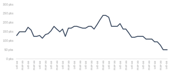 Mentre fino al 2019 l’extra-rendimento degli asset secondari è diminuito a causa della convergenza dei tassi di rendimento degli asset core e secondari (grafico 1), la crisi sanitaria dovrebbe portare una nuova gerarchia di tassi, evidenziando la polarizzazione dei mercati tra gli asset core e gli asset secondari. Alla fine del terzo trimestre del 2020, il rendimento aggiuntivo derivante dagli asset secondari si è mantenuto a un basso livello di 50 bps rispetto a una media a lungo termine di 145 bps.