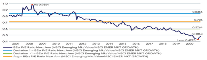 Differenziale sulle valutazioni tra growth e value nei mercati emergenti