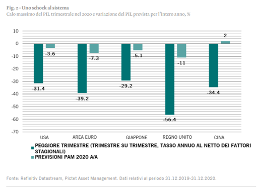 Con la maggior parte delle classi di attivi tradizionali che nel 2020 hanno realizzato una performance positiva, è facile dimenticare che quasi tutte le principali economie hanno vissuto la recessione più brusca del secolo o, nel caso del Regno Unito, da più di tre secoli a questa parte. I lockdown imposti per contenere il virus durante il primo e il secondo trimestre dell’anno hanno causato un calo della produzione fino al 30% su base annua.