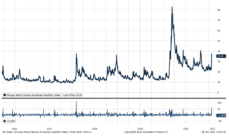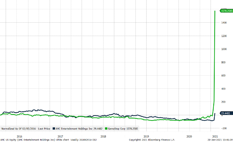 La scorsa settimana abbiamo assistito a un improvviso rialzo del prezzo azionario di GameStop e AMC, e a un generale aumento di altri titoli statunitensi sui quali molti fondi speculativi detenevano posizioni ribassiste, in virtù del cosiddetto short squeeze. Questo fenomeno, oltre ad aver suscitato scalpore, ha anche causato una variazione giornaliera significativa dell’indice VIX, che non si verificava dal 5 febbraio 2018, generando di conseguenza molta incertezza sui mercati e l’applicazione di un approccio indirizzato alla riduzione del rischio in molte strategie di investimento azionario.
