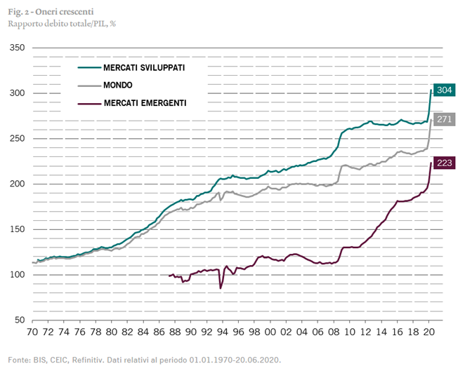 Dopotutto, lo scoppio della pandemia ha causato una spesa senza precedenti da parte dei governi di tutto il mondo, a prescindere dalle loro reali possibilità, con la decisione drastica, presa nel giro di poche settimane, di un simultaneo allentamento monetario e fiscale. Alcuni Paesi sono prossimi ad adottare il tipo di finanziamento della spesa pubblica da parte delle banche centrali previsto dalla Teoria Monetaria Moderna, una misura fino a poco tempo fa ai margini del pensiero economico.