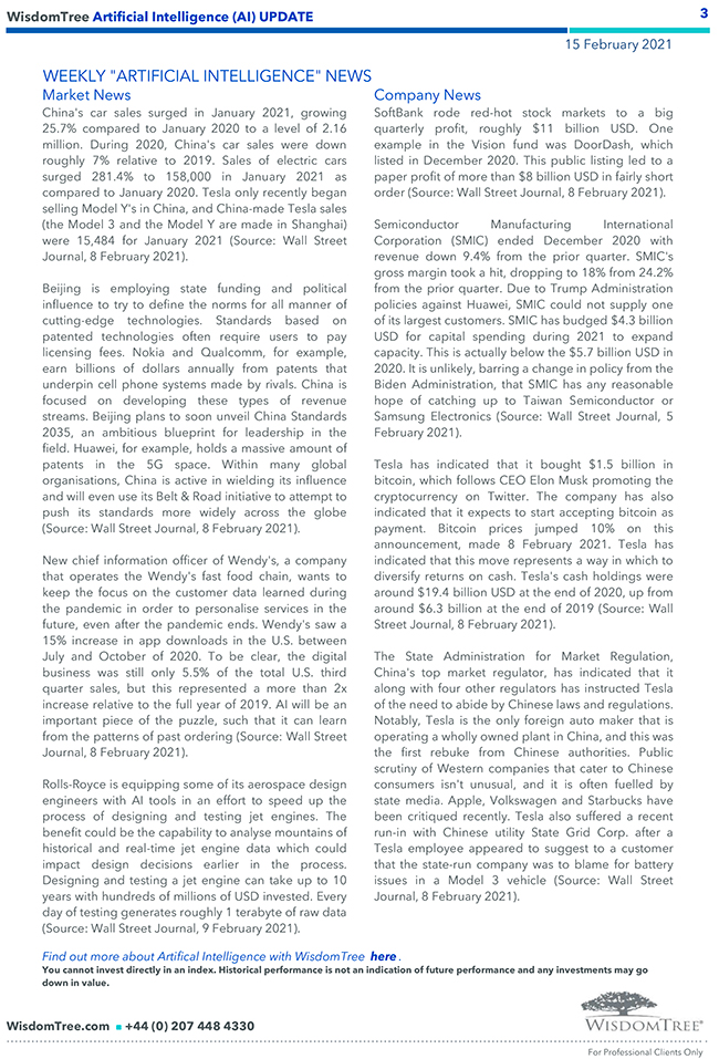 WisdomTree – Weekly “Artificial Intelligence (AI)” Update – 15 feb 2021