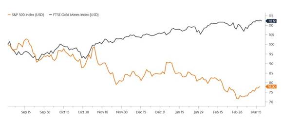 Grafico 1: Le società aurifere e le azioni sono disaccoppiate
