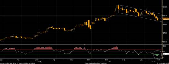 Da quando sono emerse le aspettative di inflazione la scorsa estate, il mercato obbligazionario si è preoccupato di un aumento dei tassi e persino di una riduzione degli acquisti di asset. Ma Powell ha ora confermato che non si ripeterà il “taper tantrum” del 2013, e che qualsiasi aggiustamento della politica monetaria sarà comunicato con largo anticipo. Allo stesso tempo, un intervento per il controllo della curva dei rendimenti rimane probabile, non menzionato ma ben presente sullo sfondo. Il calo dei tassi d’interesse reali sembra quindi inevitabile, il che rappresenta un fattore di rialzo per l’oro – la tradizionale copertura contro l’inflazione. Vediamo ulteriori stimoli, pacchetti fiscali e monetari di sostegno e banche centrali accomodanti come la realtà di quello che resta un ambiente macroeconomico molto stressato.