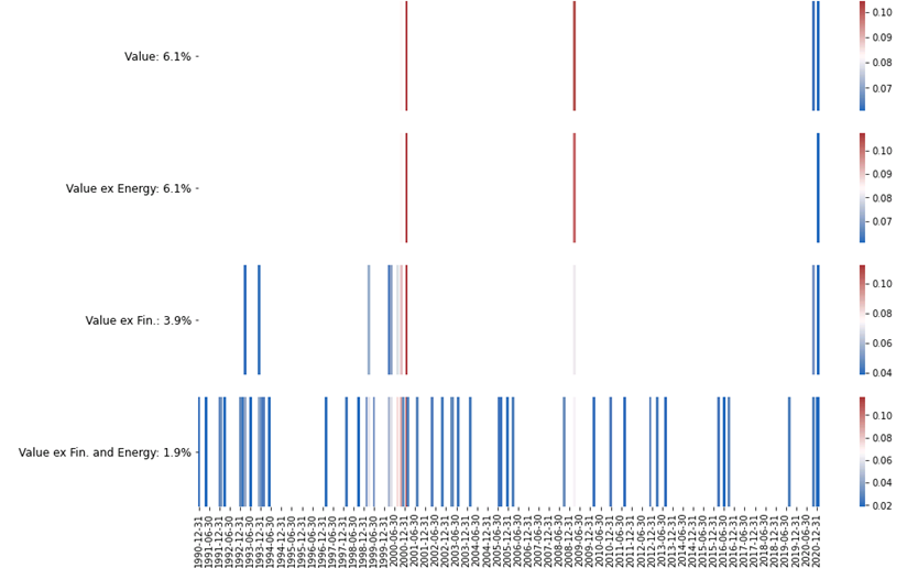 Figura 1: Mesi in cui Value (basso P/B) ha avuto una sovra performance superiore a quella osservata in febbraio 2021.