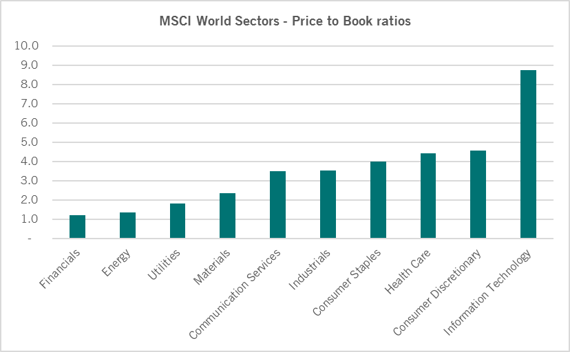 Figura 3: Livelli Price/Book dei diversi settori dell’indice MSCI World al 28.02.2021.