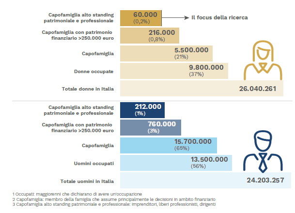 Le donne di questo segmento sono solo 60mila, equivalenti allo 0,2% della popolazione femminile, mentre nella popolazione maschile, gli investitori di alto profilo arrivano all’1%, cinque volte tanto.