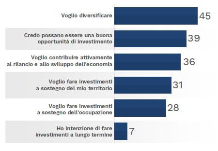 Fig. 3 – Domanda: Quali dei seguenti aspetti la rendono favorevole agli investimenti in economia reale? (dati in %)