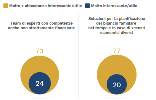 Il 73% vorrebbe essere affiancata da esperti con competenze anche non strettamente finanziarie e una donna su cinque ritiene che la capacità di essere seguite nel tempo rappresenti la chiave per migliorare il servizio di consulenza professionale. In base alla loro esperienza, il 20% delle donne di “alto profilo” conferma che nel corso delle conversazioni con il loro consulente finanziario di riferimento vengono affrontati aspetti più generali e di prospettive future, come ad esempio la protezione del rischio o la trasmissione del patrimonio.