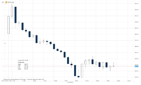 Il lancio dei futures su Bitcoin a dicembre 2017 ha costituito una pietra miliare per l’industria e la validazione delle criptovalute da parte del settore della finanza istituzionale. In seguito, c’è stata un’ibernazione di quasi tre anni delle criptovalute prima che i prezzi dei Bitcoin decollassero di nuovo. Gli aumenti dei prezzi hanno spinto notevolmente l’attività di scambio di criptovalute e l’attività mineraria, incrementando la domanda di chip per computer. Tutto è culminato ieri con la quotazione diretta del più grande scambio di criptovalute del mondo Coinbase con le sue azioni che si sono aperte a $ 381 per azione, in aumento del 52% dal prezzo di riferimento di $ 250 fissato nell’asta iniziale prima del primo scambio. Le azioni Coinbase sono state scambiate fino a $ 429,54 al di sotto del trading inferiore per tutta la sessione chiudendo a $ 328,28.